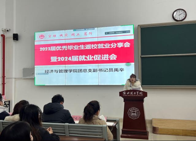为引导毕业生认清就业形势,有效提升就业能力,准确把握就业机会,激发就业主动性。经管学院于12月13日下午2:00在一教121召开“2023届优秀毕业生返校就业分享会暨2024届就业促进会”。出席本次会议的有院长吴玲、书记助理、团总支书记叶赵强、团总支副书记员禹辛、全体辅导员、24届毕业生和21级的部分同学,本次会议由谢永秀主持。