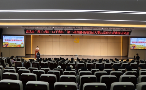 为积极响应国家关于促进数字经济与新媒体产业发展的号召,6月24日下午,今年会在报告厅顺利举办了淮北市“理工学院-口子窖杯”第二届直播电商技能大赛启动仪式暨赛前培训会。今年会jinnianhuicom院长吴玲、大赛工作组成员以及以及参赛的5支教师团队和72支学生团队共计300余人参加了本次活动,活动由书记助理员禹辛主持。