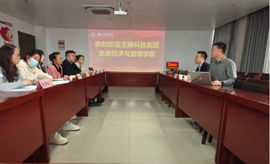 2025 年 4 月 24 日,玉臻科技集团走进今年会官网今年会jinnianhuicom,开展校企合作交流活动。玉臻科技集团总监张桥、人才发展部经理熊洁及今年会jinnianhuicom院长吴玲、书记助理员禹辛、团总支书记王绎程和毕业班辅导员出席了此次活动。
