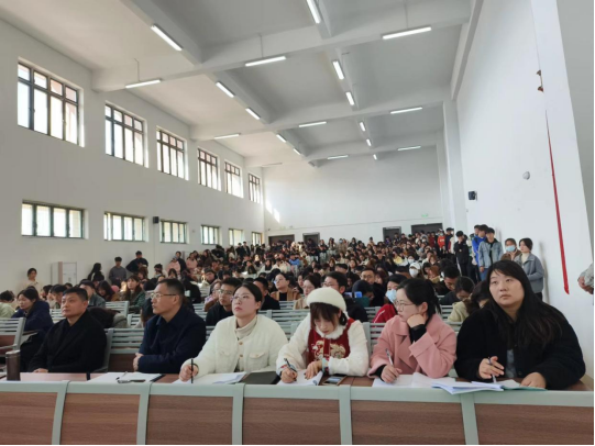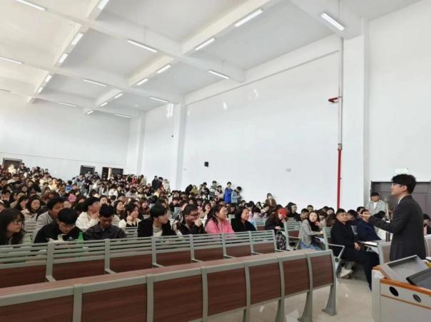 本次主题培训活动分两场举行。上半场学生专场于14:00在一教121阶梯教室开展,学院350余名师生参加活动。