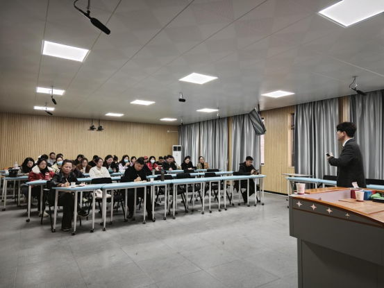 下半场教师专场培训于16:00在一教210智慧教室进行,院长吴玲主持活动,学院全体教师参会。