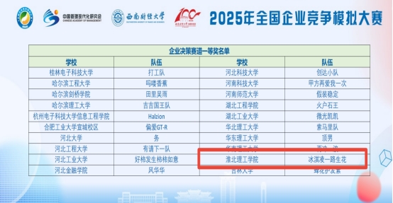 5月18日,由中国管理现代化研究会、高等学校国家级实验教学示范中心联席会经管学科组指导,中国管理现代化研究会决策模拟专业委员会主办,全国企业竞争模拟大赛组委会承办的2025年第十六届时全国企业竞争模拟大赛全国总决赛在西南财经大学落下帷幕。来自北京大学、浙江大学、武汉大学、南开大学、吉林大学和西南财经大学等高校的349支队伍晋级总决赛进行巅峰对决。今年会学子在比赛中表现优异,荣获一等奖!