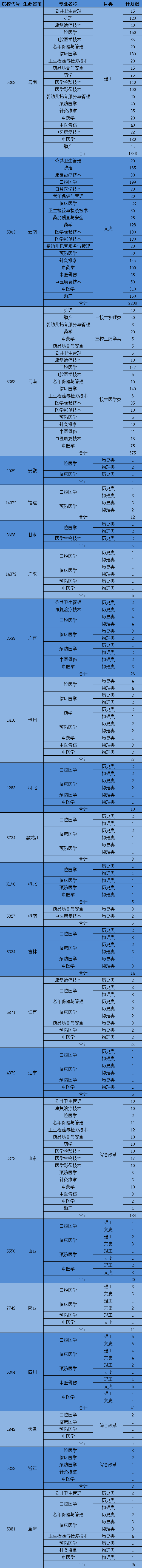 注:1、分省分专业招生计划以各省级招生考试管理部门公布为准。